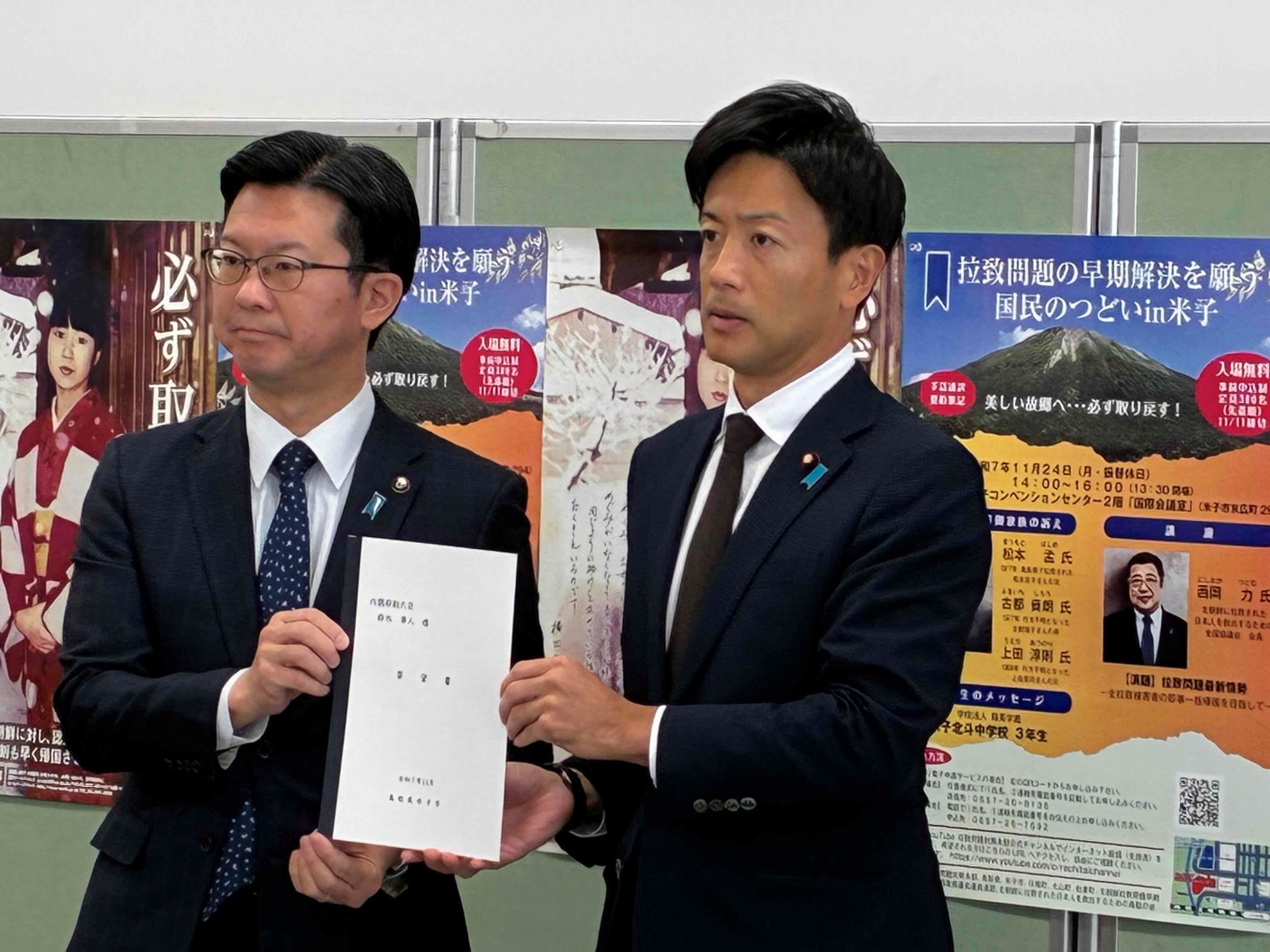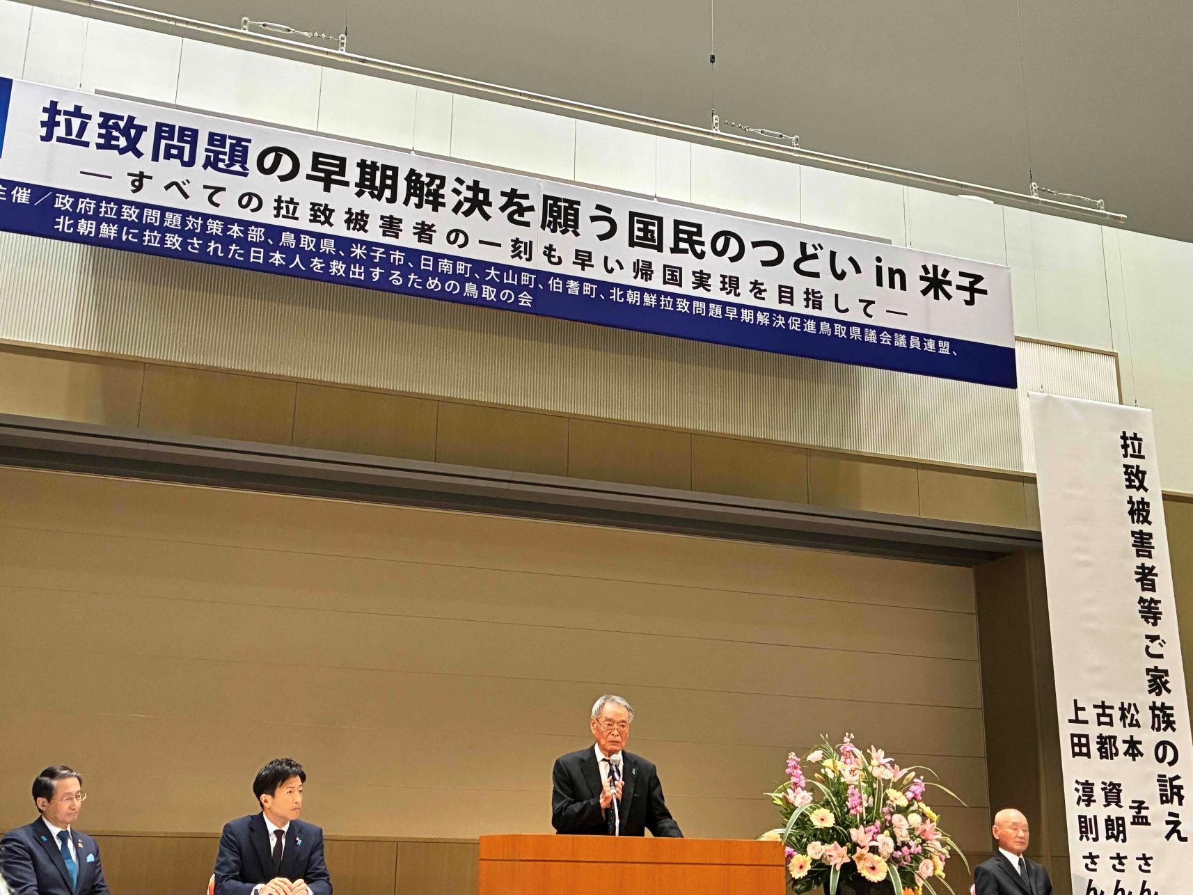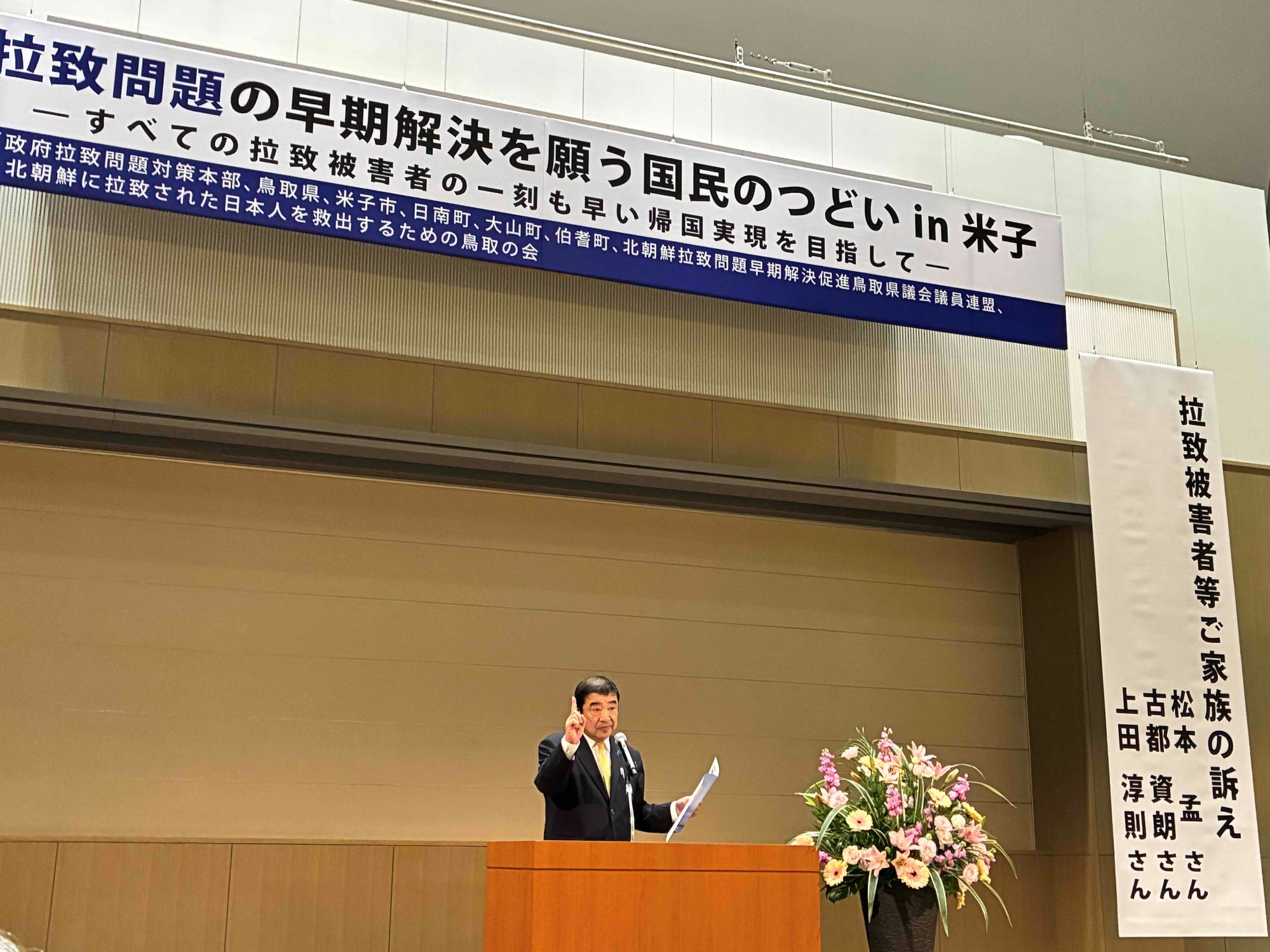 令和7年11月24日(月・振替休日)、米子市にある米子コンベンションセンターにおいて、政府拉致問題対策本部、鳥取県、米子市、日南町、大山町、伯耆町、北朝鮮拉致問題早期解決促進鳥取県議会議員連盟、