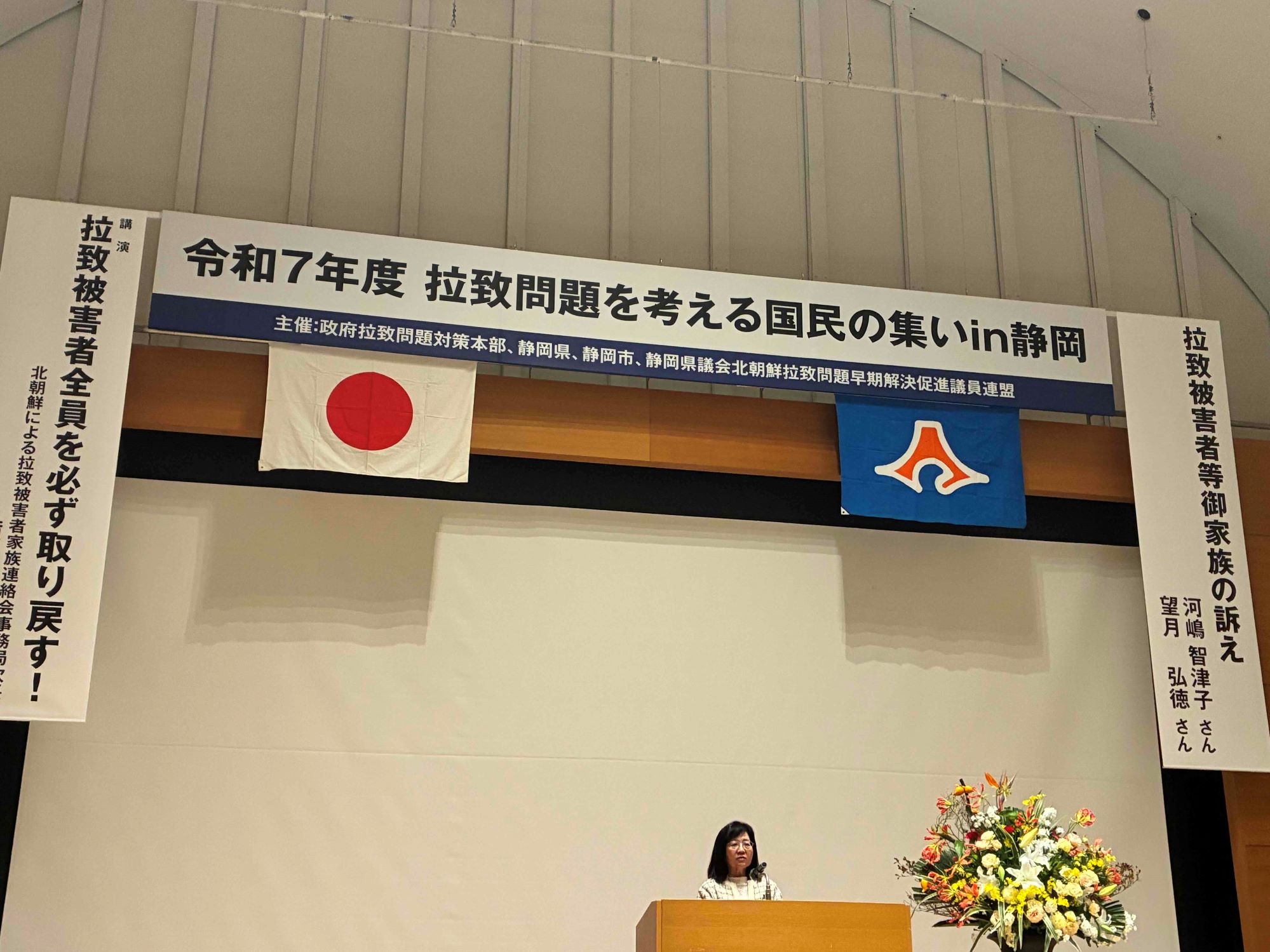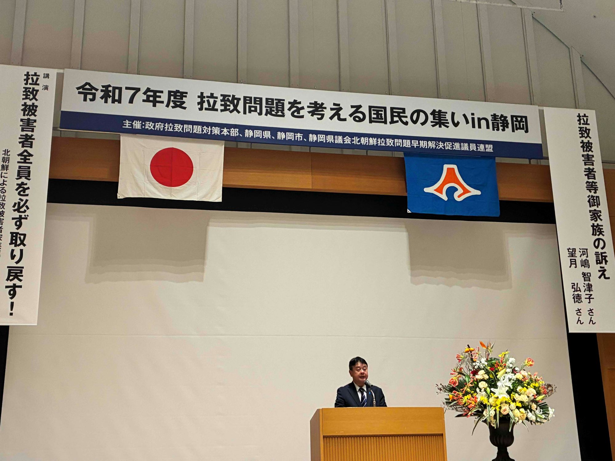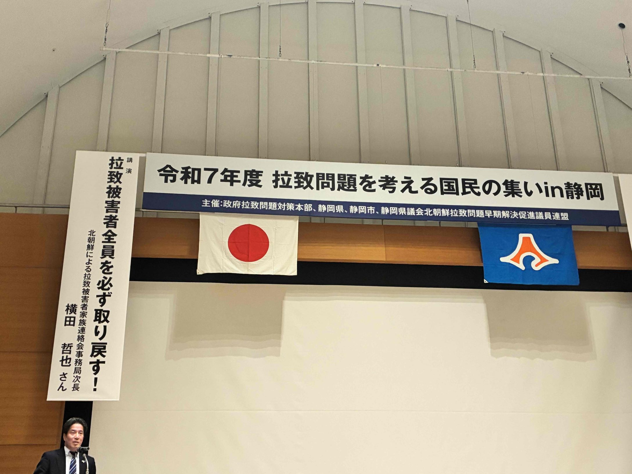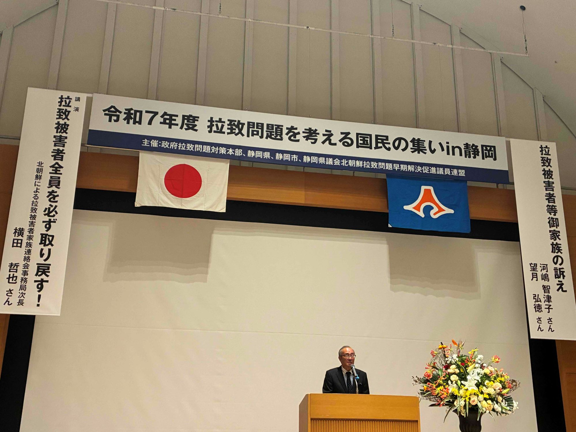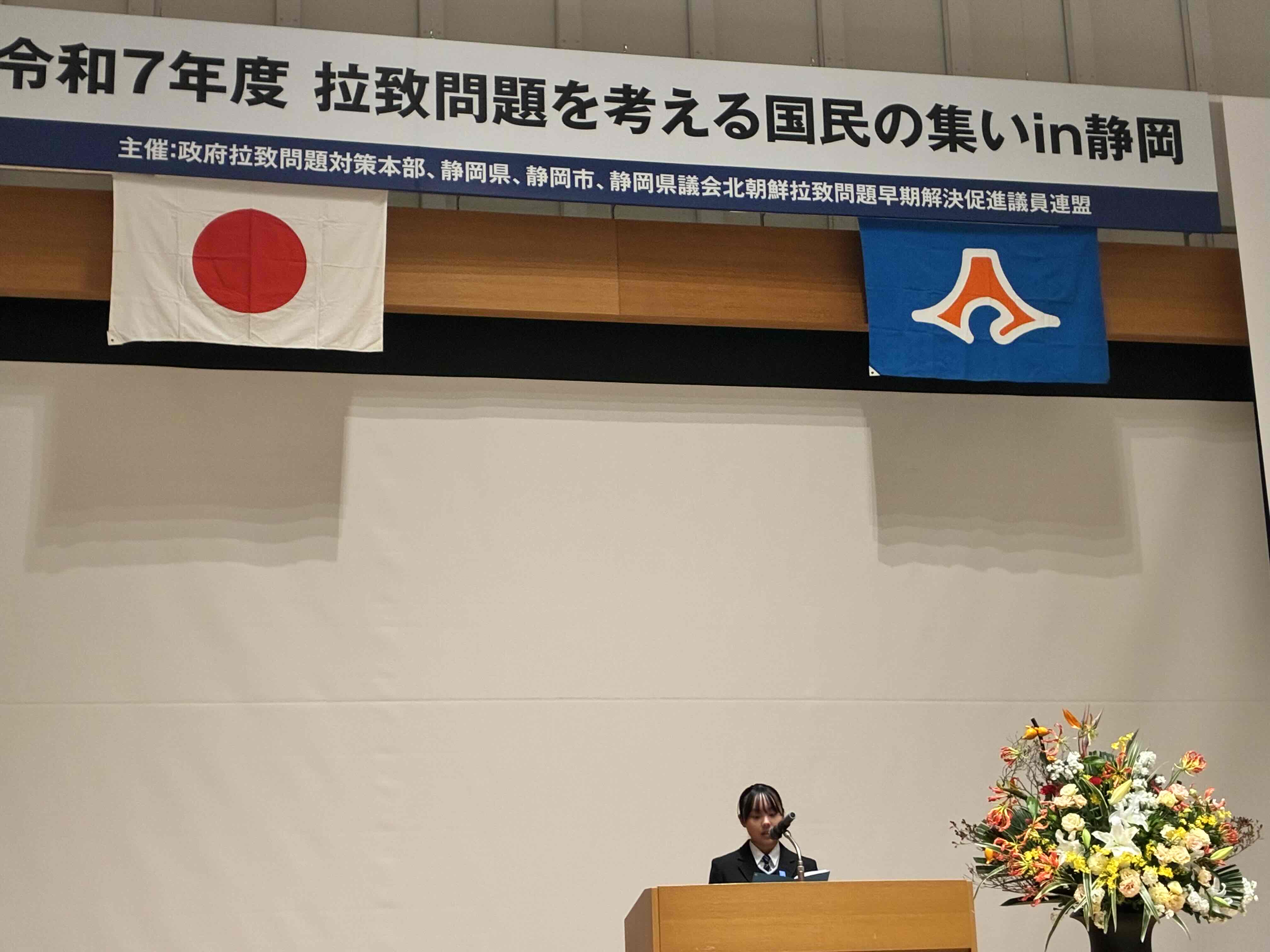 令和7年11月29日(土)、静岡市にある静岡県コンベンションアーツセンター グランシップにおいて、政府拉致問題対策本部、静岡県、静岡市、静岡県議会北朝鮮拉致問題早期解決促進議員連盟の共催により「拉致問題を考える国民の集いin静岡」を開催しました。