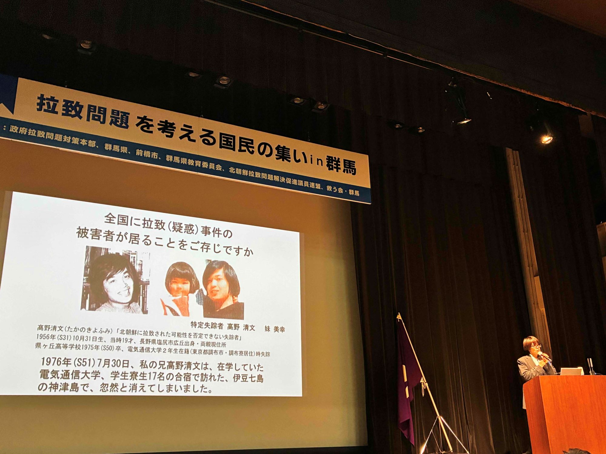 令和7年12月6日(土)、前橋市にある群馬会館において、政府拉致問題対策本部、群馬県、前橋市、群馬県教育委員会、北朝鮮拉致問題解決促進議員連盟、救う会・群馬の共催により「拉致問題を考える国民の集いin群馬」を開催しました。