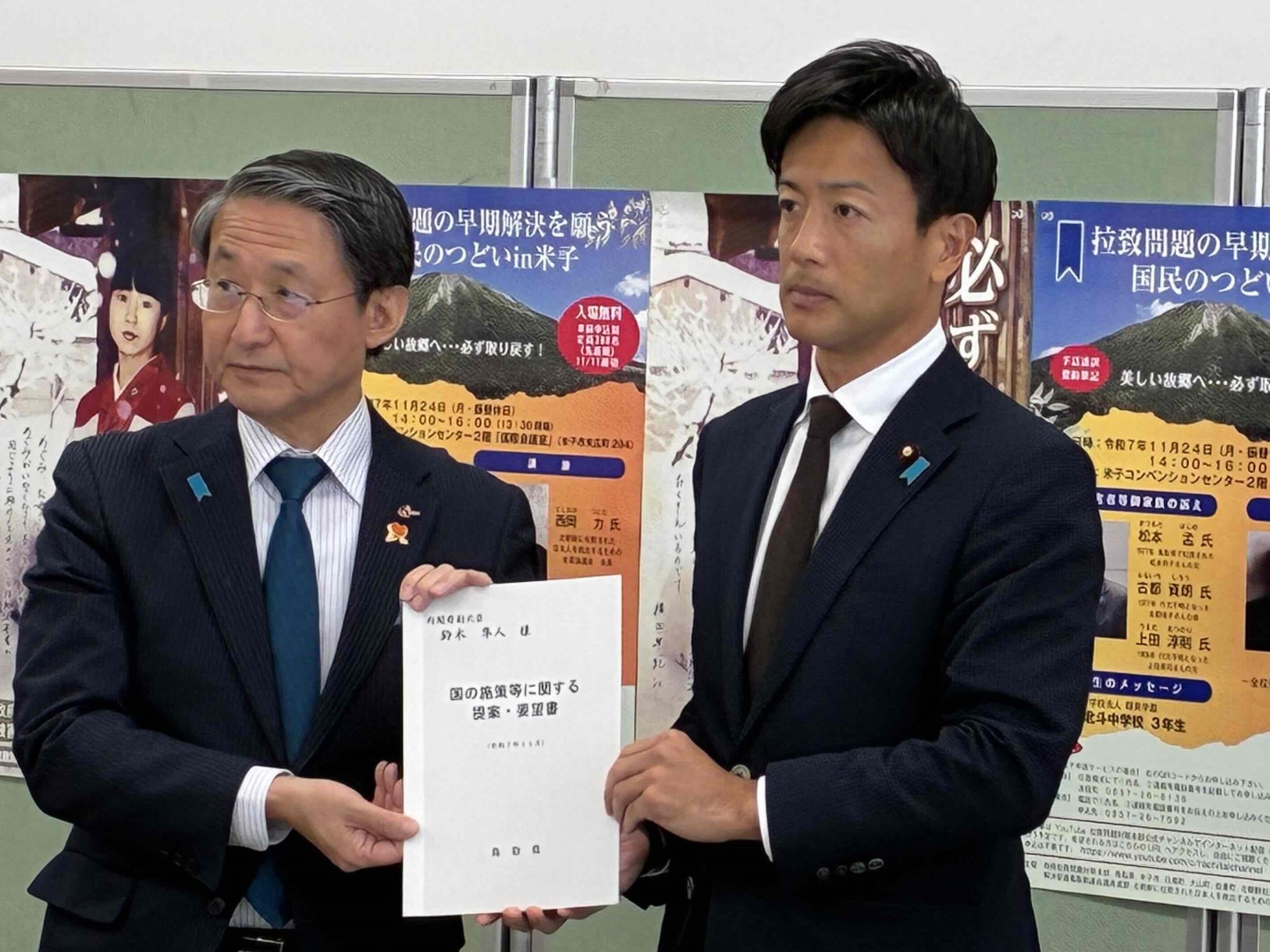 令和7年11月24日(月・振替休日)、米子市にある米子コンベンションセンターにおいて、政府拉致問題対策本部、鳥取県、米子市、日南町、大山町、伯耆町、北朝鮮拉致問題早期解決促進鳥取県議会議員連盟、