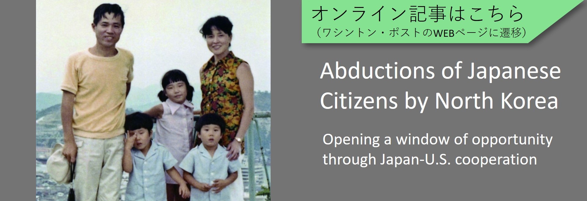 拉致問題対策本部は、米国など国際社会において広く拉致問題についての関心と認識を深める観点から、昨年に続き、ワシントン・ポストに意見広告記事を掲載します。