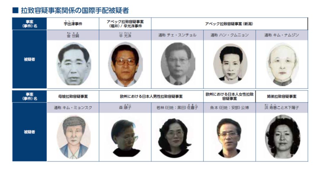 また、警察においては、朝鮮籍の姉弟が日本国内から拉致された事案1件(被害者2人)についても北朝鮮による拉致容疑事案と判断するとともに、北朝鮮工作員等拉致に関与した10人について、逮捕状の発付を得て国際手配を行っている。